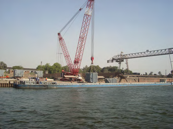 Sennbogen 6100 (100ton) in Port Said for different lifting and installations